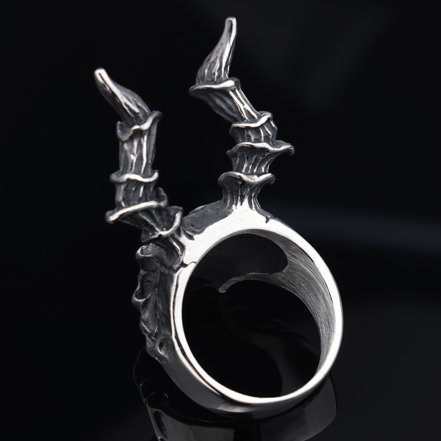 Punk style sheep horn skull ring